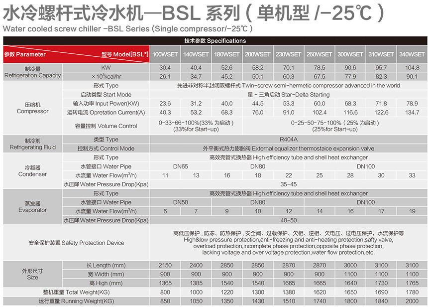 水冷螺桿式冷水機規(guī)格參數(shù)