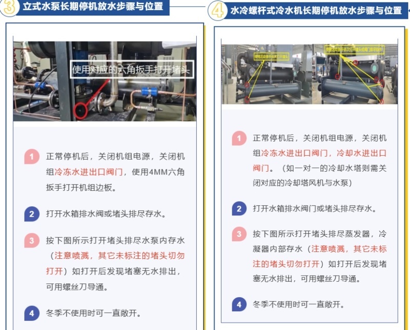 前言:尊敬的客戶您好!強(qiáng)寒潮來臨我司溫馨提示:為了避免低溫環(huán)境導(dǎo)致設(shè)備損壞,需要對設(shè)備及時(shí)進(jìn)行排水。如冷水機(jī)組、管道、水 ...